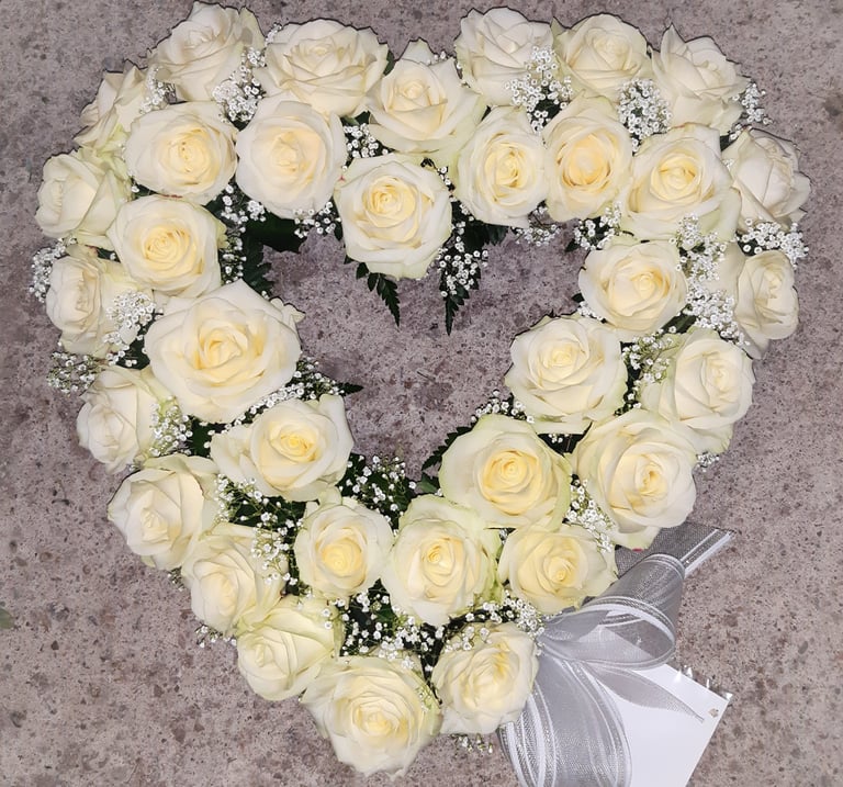 Asetelma sydän-sienipohjaan, ruusu- ja harsokukka.